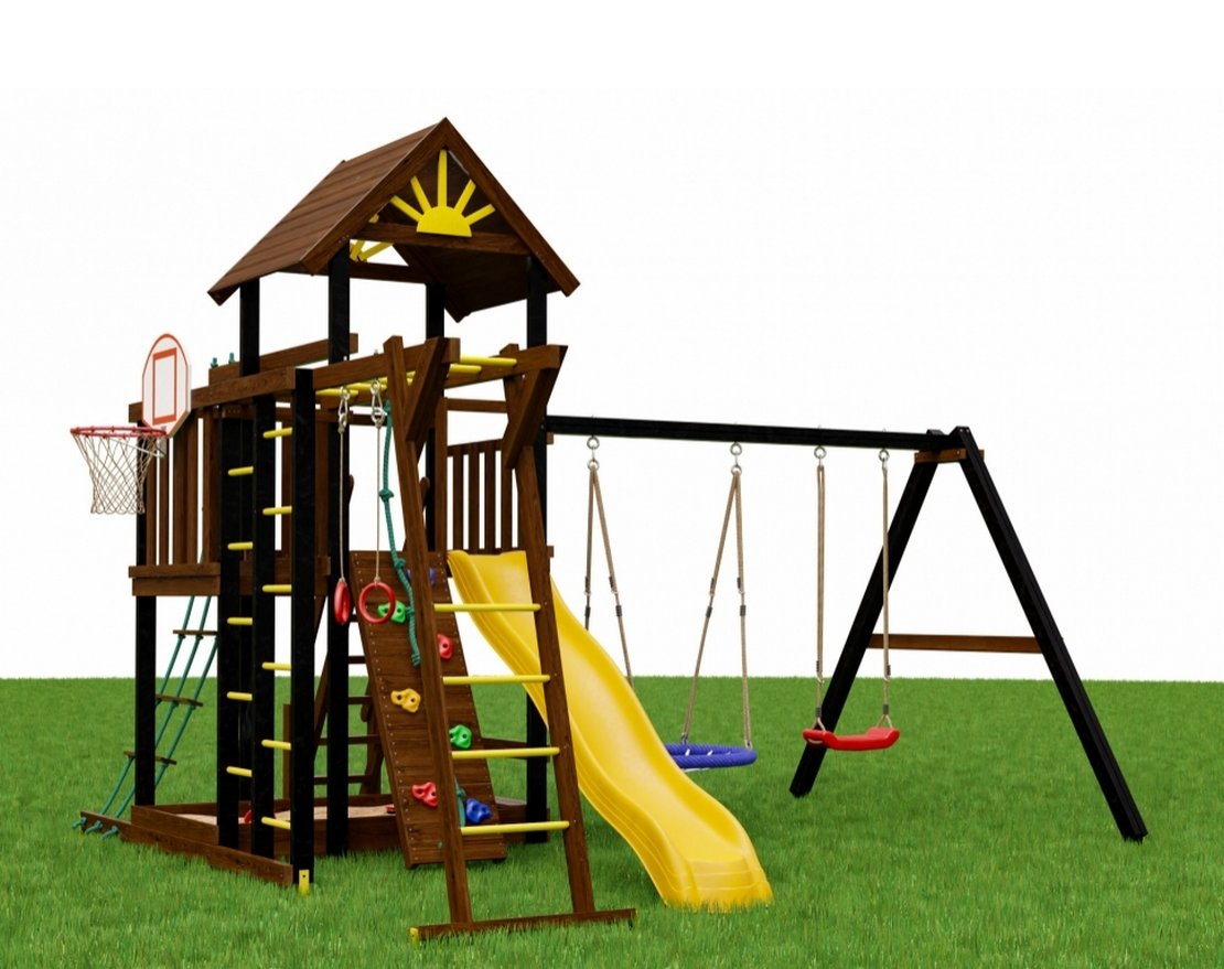 Кроме традиционных модулей, которые есть во всех площадках серии Флорида, конструкция дополнена рукоходом и гимнастическими кольцами, а это новые возможности для развития мышц спины и рук ребенка. Игры на качелях, горной стенке с канатом, игры с баскетбольным мячом позволят улучшить работу вестибулярного аппарата, укрепят мышцы ног и всего тела.