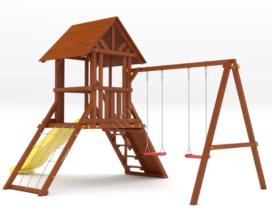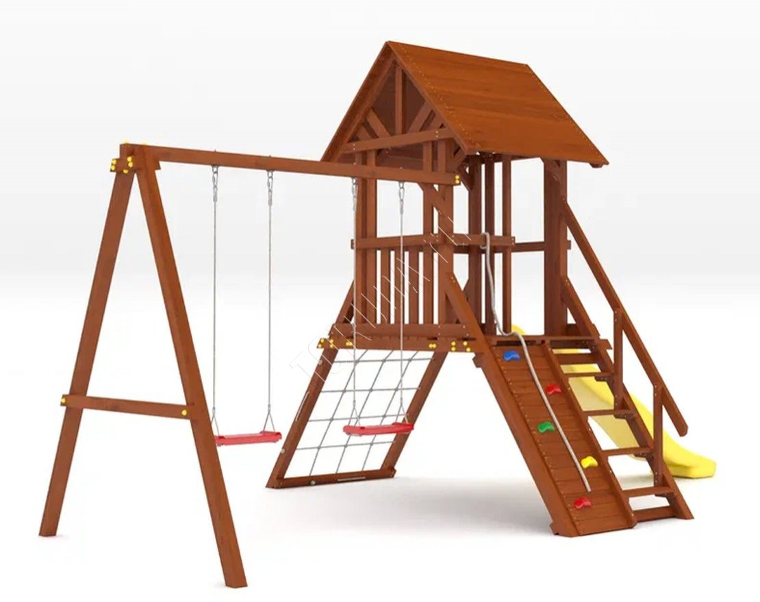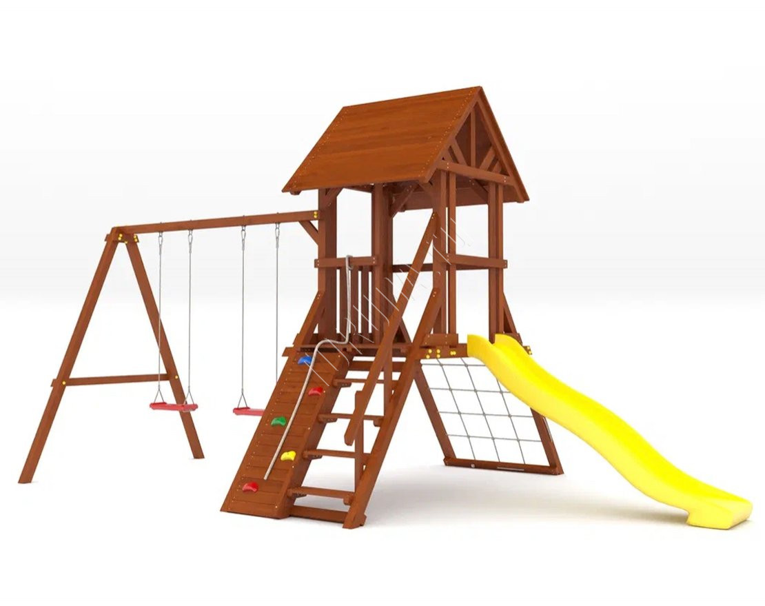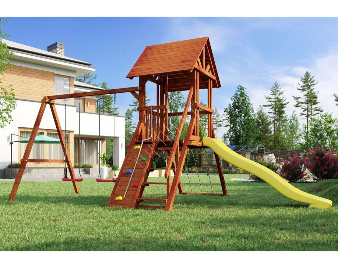 Продуманное игровое пространство, которое сочетает активные развлечения и спортивные элементы. Подходит для дачи и загородного дома, обеспечивая безопасность и комфорт во время активных игр.