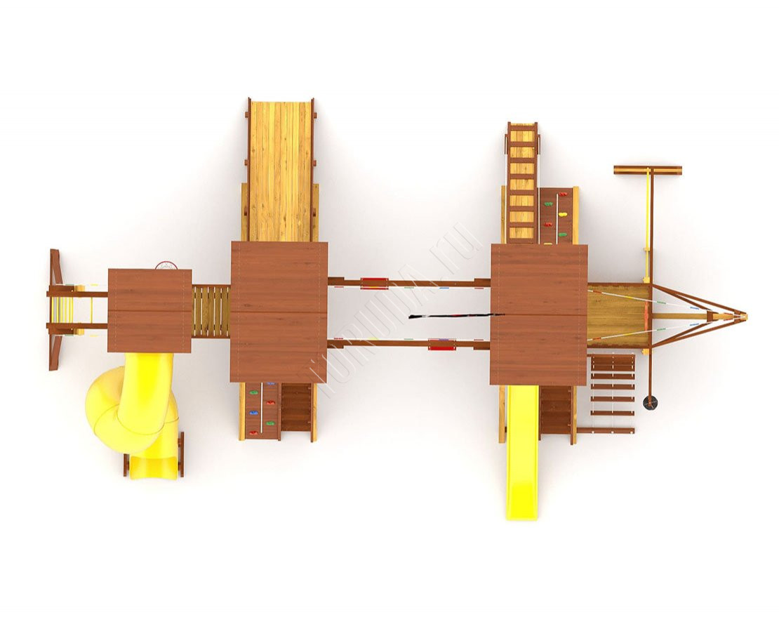 Площадка Галиот 16 обладает довольно широким функционалом (который по желанию можно легко расширить). А на качелях могут кататься даже родители! Детская площадка предназначена для дачи, коттеджа.