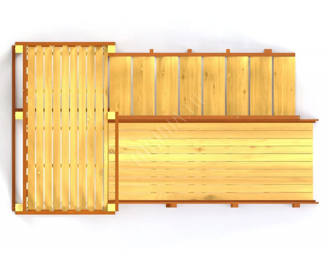 Прочная конструкция служит в течение многих лет благодаря клееному брусу. Такой экологичный материал стабильно держит форму, даже при перепадах температуры воздуха. От влаги дерево защищено краской на натуральной водной основе (в соответствии с ГОСТ).