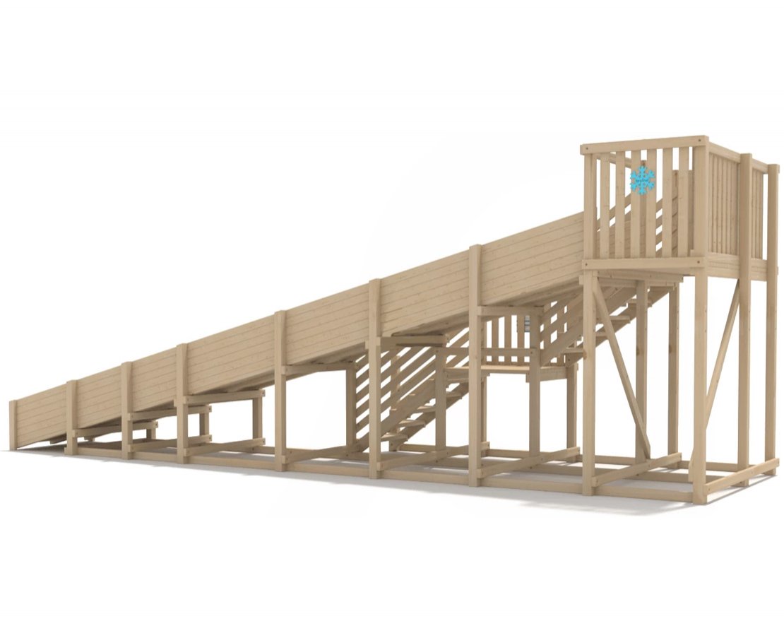 Детская заливная зимняя горка Snow Fox (скат 8 м), без окраски – несущая деревянная конструкция с усиливающими балками. Она имеет скат длиной 8,0 м, а шириной – 1,28 м. Скат достаточно просторный, поэтому ребятам будет удобно с него скатываться в объёмной тёплой одежде. Скат заливается холодной водой при минусовой температуре, после чего горка готова к эксплуатации.