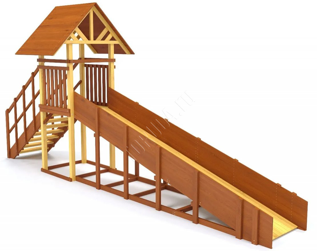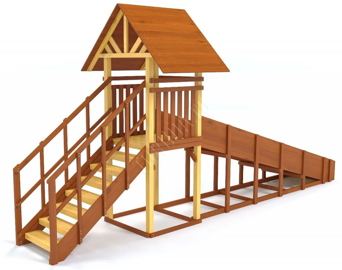 Силовые детали конструкций производены из крепкого клееного бруса с квадратным сечением (сторона 90 мм). Дерево покрыто натуральной краской на водной основе, которая выдерживает перепады температур и при этом абсолютно безопасна для малышей.