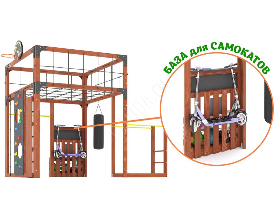 Это не просто набор для игр, а целый комплекс, который включает в себя элементы для физического развития, активного отдыха и комфортного времяпрепровождения всей семьи. Площадка станет настоящим украшением вашего двора, помогая детям расти здоровыми, уверенными и счастливыми.