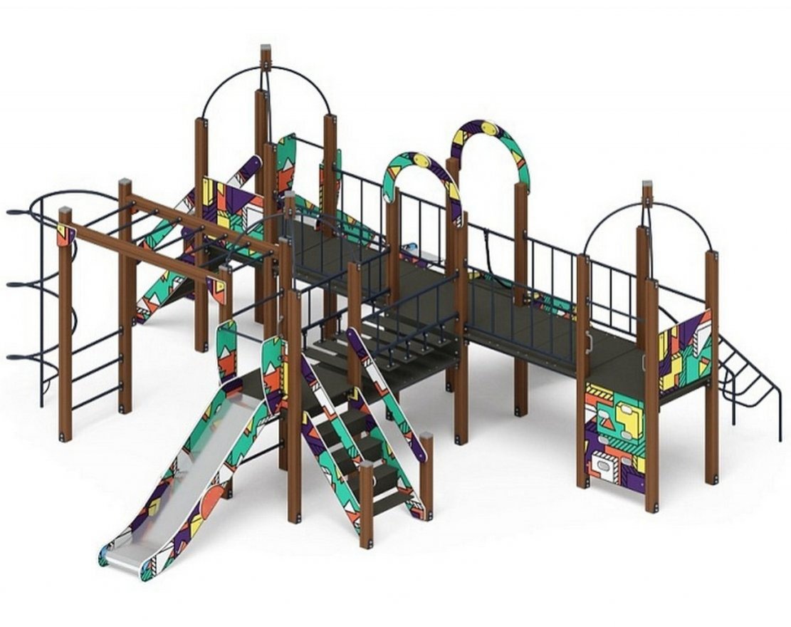 • Особенности комплектации: канат, рукоход, горка, скалодром, лестница, кольцевой лаз
