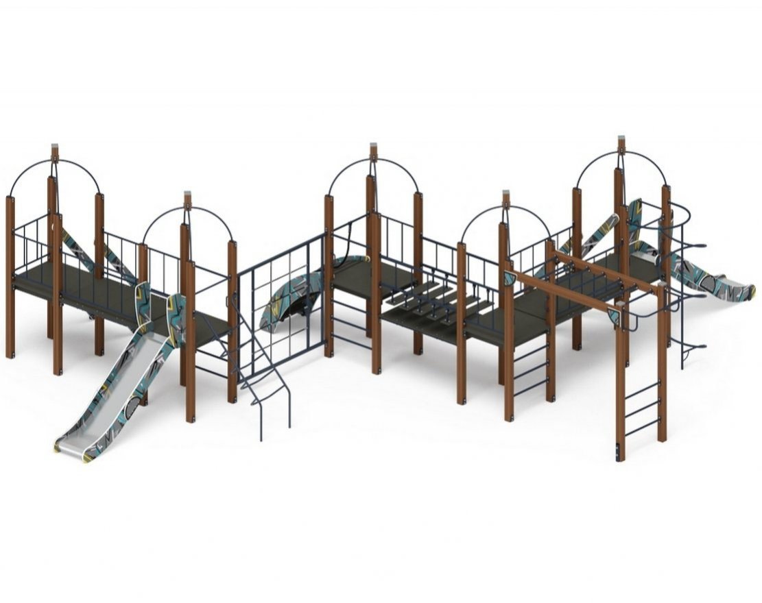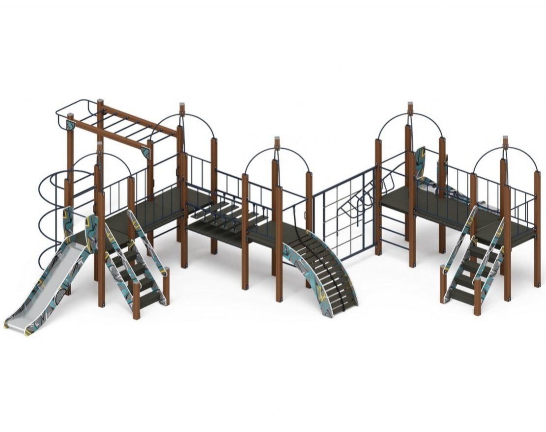 • Особенности комплектации: канат, турник, рукоход, горка, скалодром, лестница, кольцевой лаз