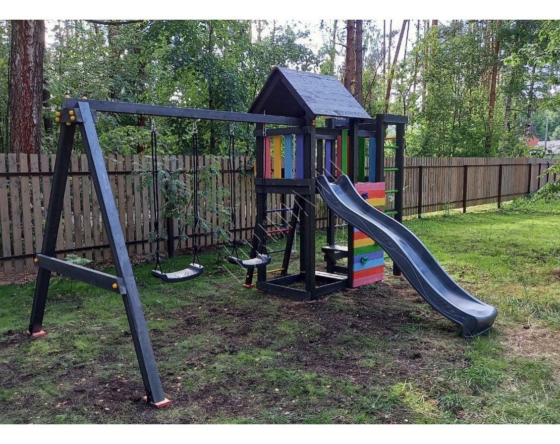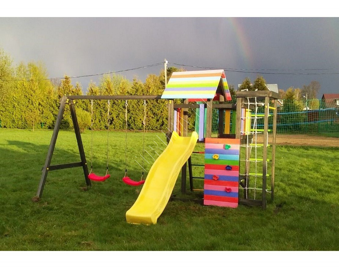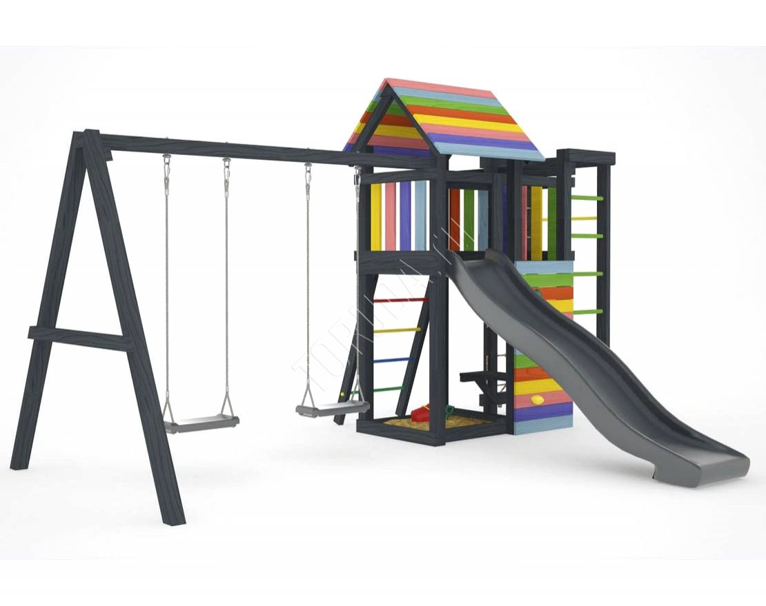 Детская площадка обладает довольно широким функционалом, предназначена для дачи, коттеджа.