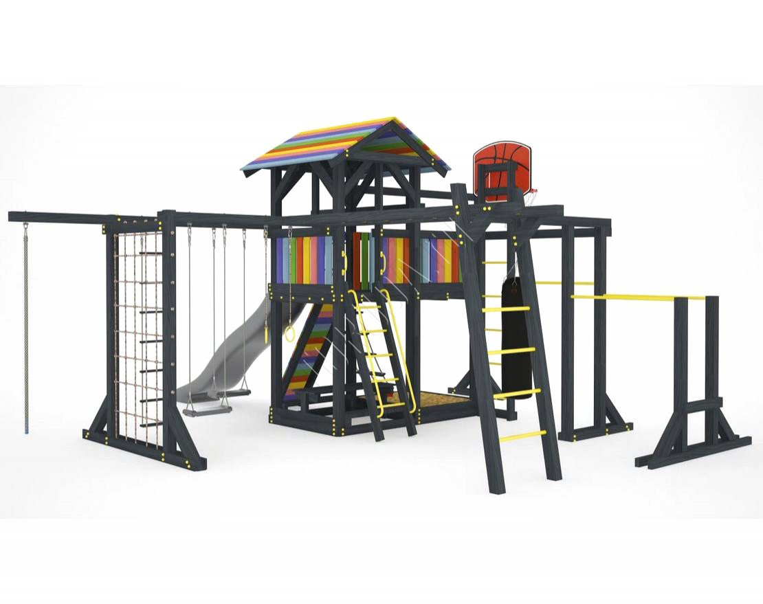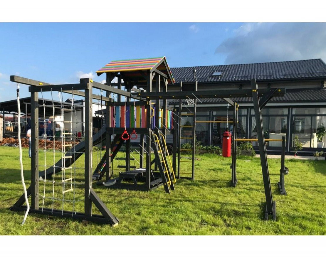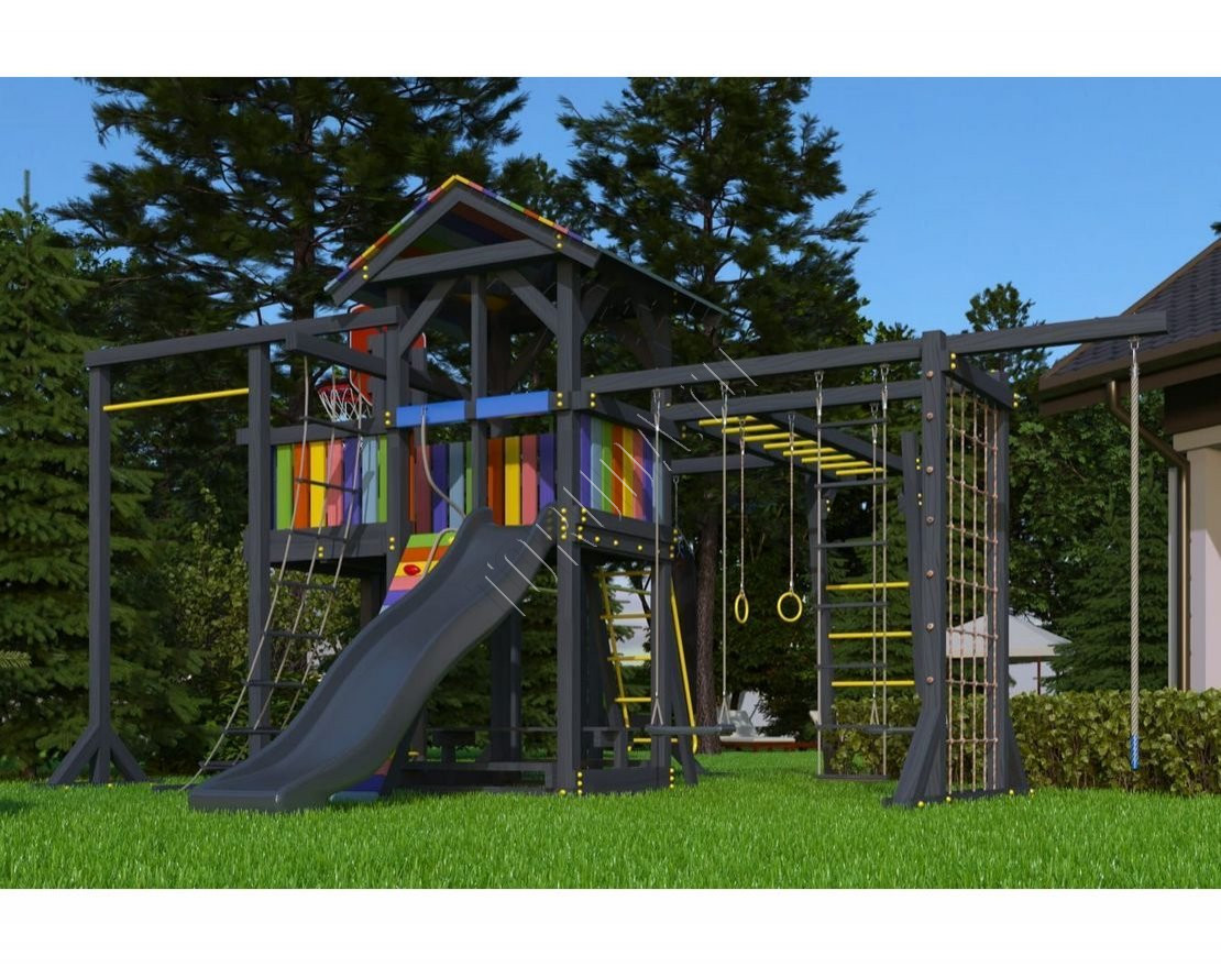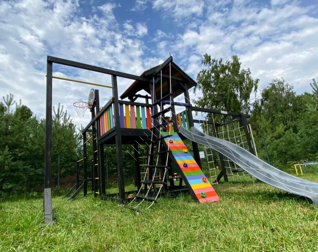 Детская площадка обладает довольно широким функционалом, предназначена для дачи, коттеджа.