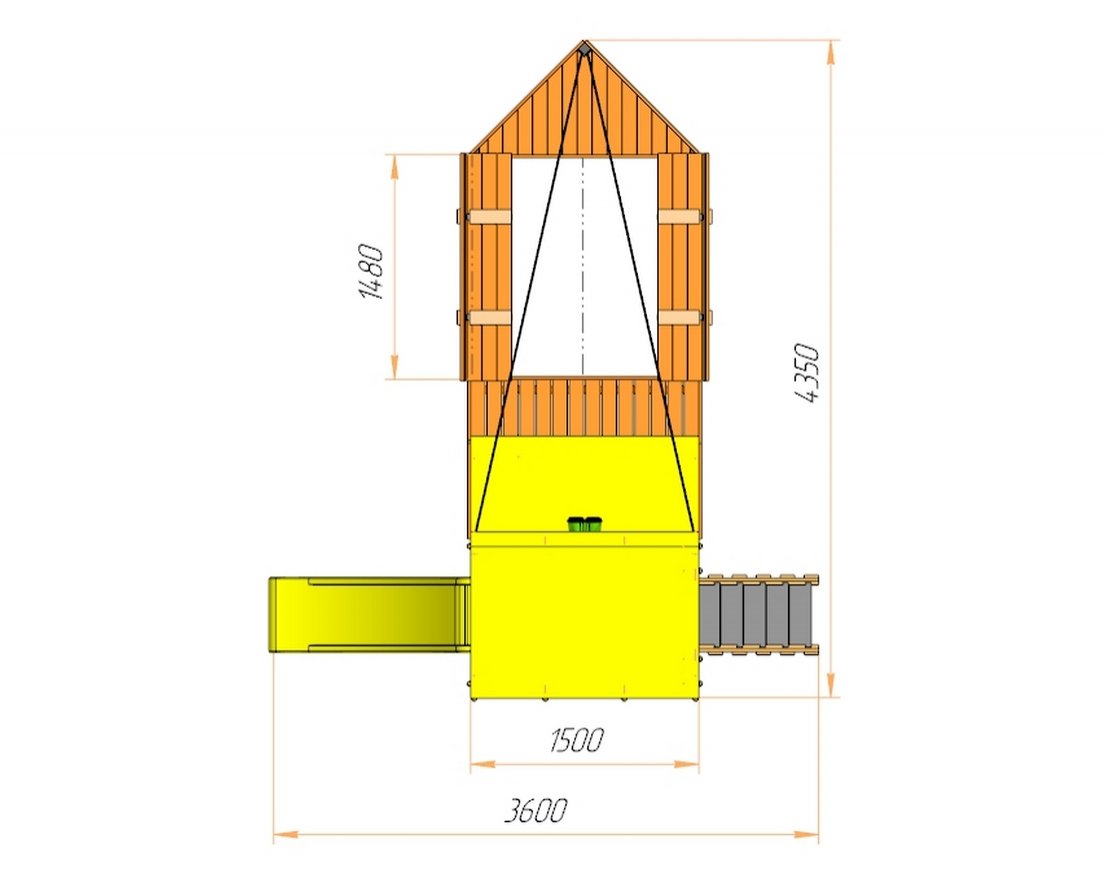 Габариты комплекса: 4350 мм х 1500 мм х 2500 мм.
