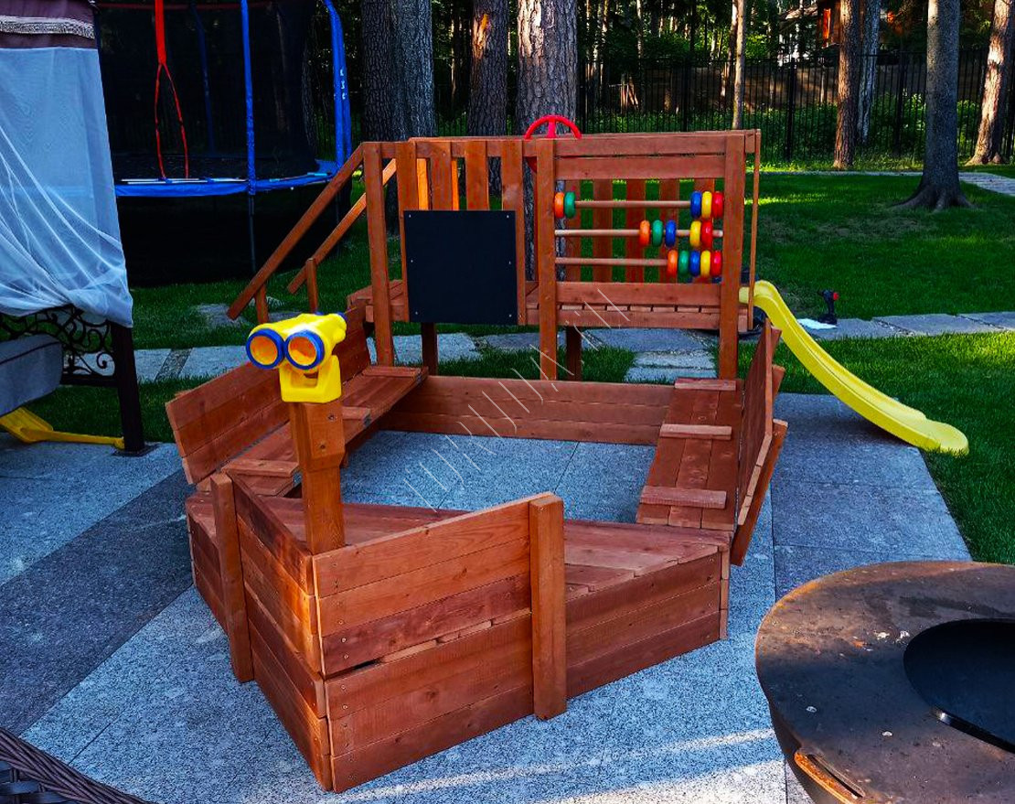 Представляет собой полноценный песочный дворик, который обеспечит ребёнку не только увлекательные игры на свежем воздухе, но и развитие моторики, координации движений, логического мышления и математических навыков.