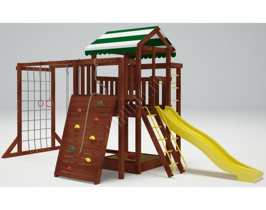 Это универсальный детский игровой комплекс, сочетающий в себе спортивные и развлекательные элементы. Он создан для того, чтобы ребёнок мог проводить время на свежем воздухе с пользой для здоровья, развивая физические навыки и фантазию.