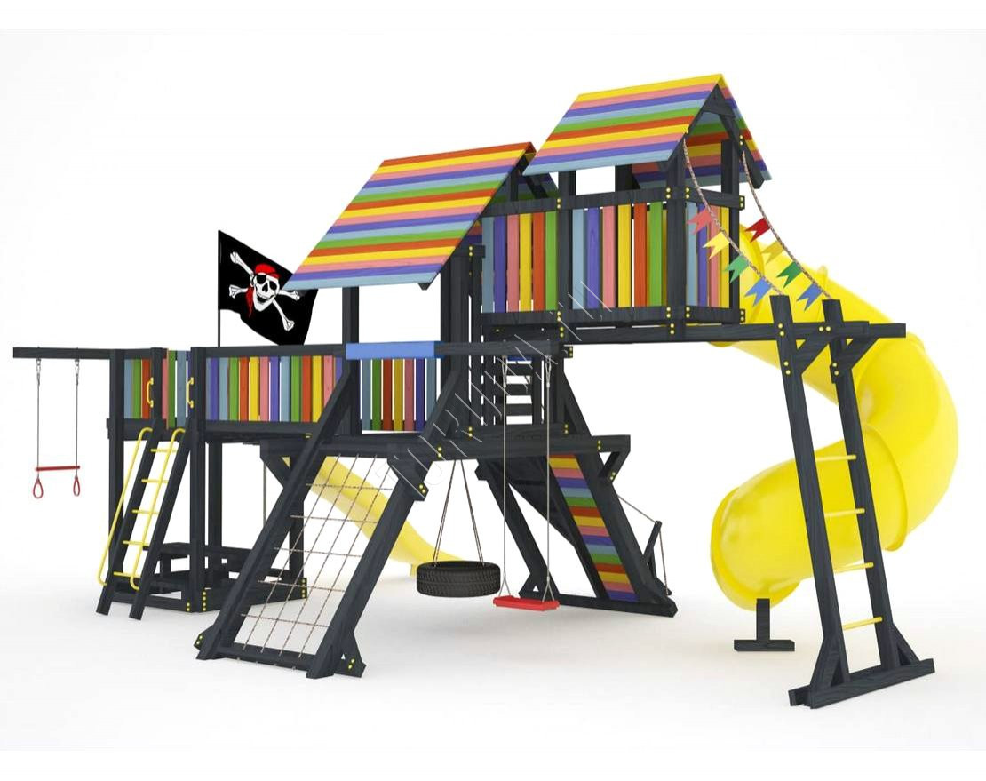 Детская площадка обладает довольно широким функционалом, предназначена для дачи, коттеджа.