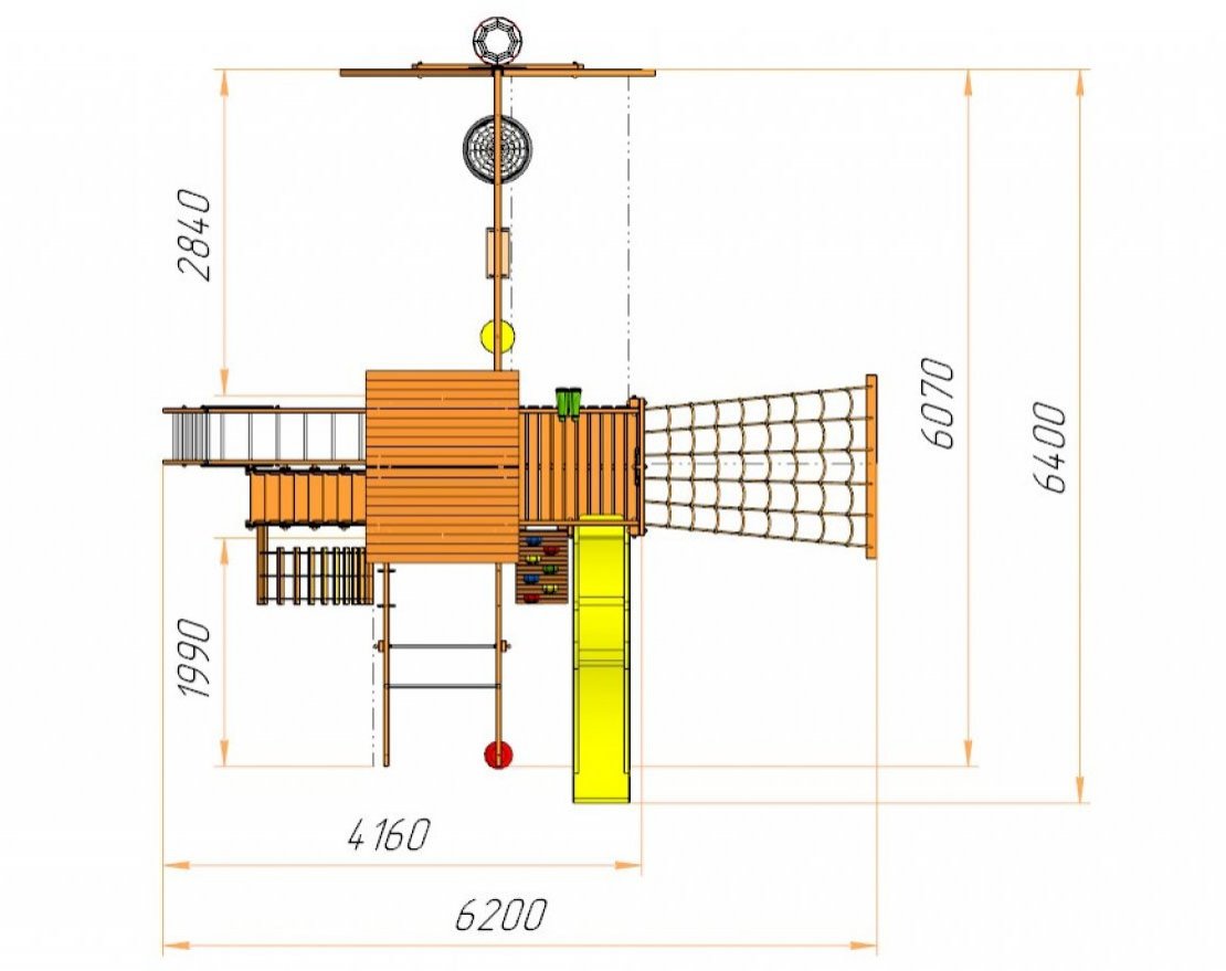 Детская игровая площадка предназначена для детей от 3 до 12 лет, и создает условия, обеспечивающие физическое развитие ребенка, развивающие координацию движений, преодоление страха высоты, ловкость и смелость, чувство коллективизма в массовых играх.