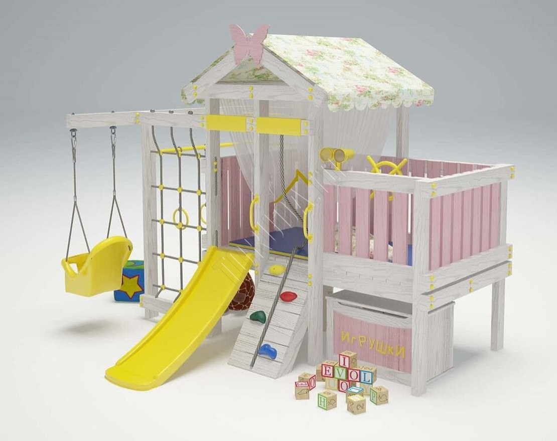 Натуральные материалы полностью безопасны. Игровой комплекс гармонично впишется в интерьер квартиры или загородного дома. Двухслойное лакокрасочное покрытие на деревянных элементах надёжно защищает кожу ребёнка при игре.