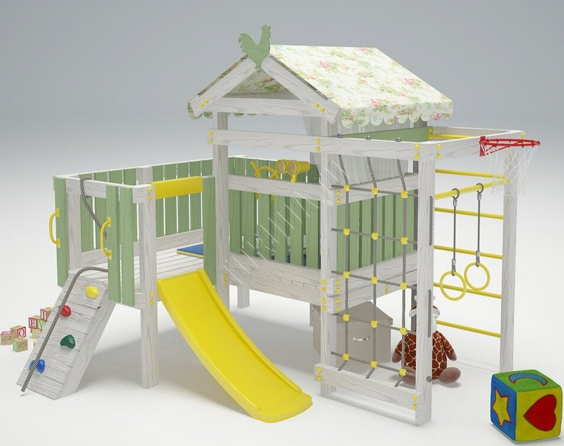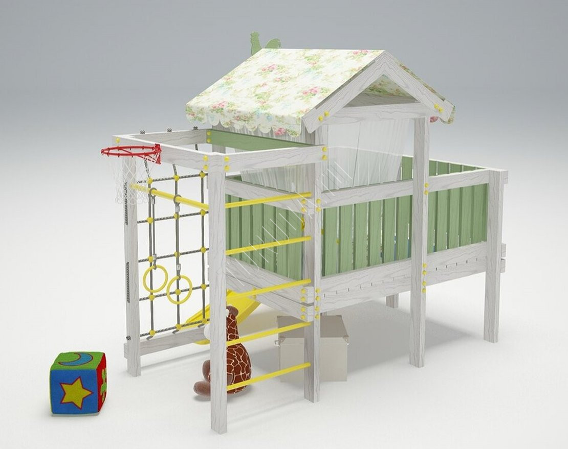 Для будущих альпинистов есть сетка-лазалка и шведская стенка - лазая по ним, ребёнок укрепляет мышцы, тренирует связки и ловкость. Для атлетов предусмотрены детские гимнастические кольца, а для будущих звезд командного спорта – баскетбольная корзина. Она поможет превратить детскую в небольшой зал и провести турнир по баскетболу.