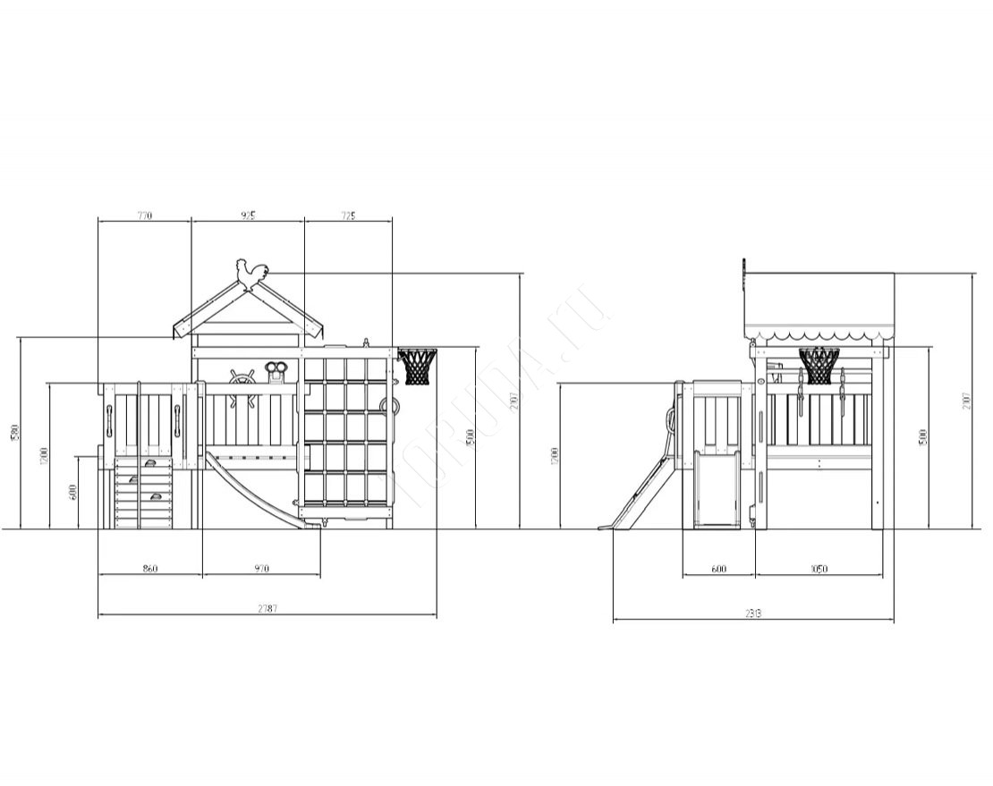 Это универсальный вариант для детей младшего возраста. Игровая зона расположена на платформе.