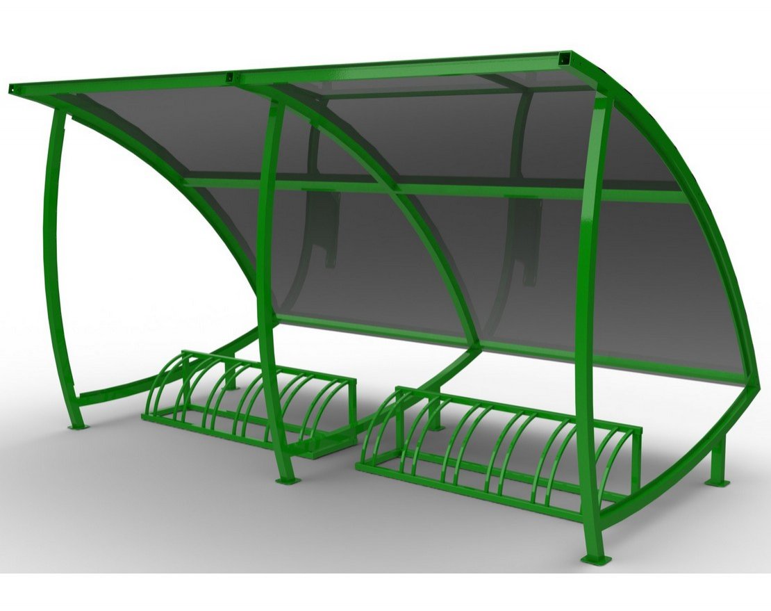 Велопарковка с навесом "Сиэтл" устанавливается в парках, зонах отдыха, у торговых центров, офисных зданий и других городских локаций. Обеспечивает упорядоченное размещение как велотранспорта, так и самокатов, защищая от осадков и ультрафиолета.